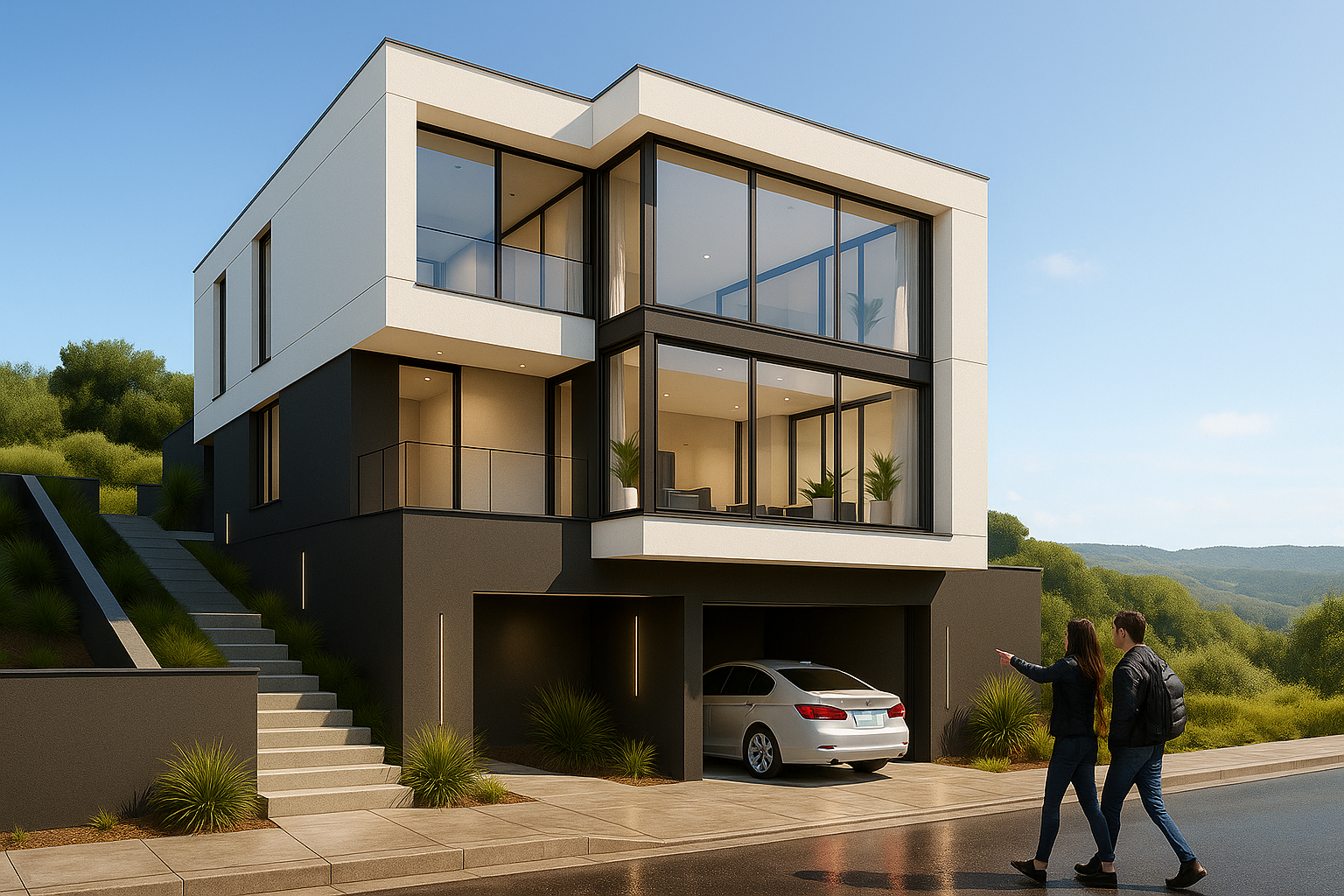 Volumetria marcante, grandes aberturas e linhas puras criam uma composição leve e atemporal, onde interior e exterior se conectam de maneira fluida e natural.