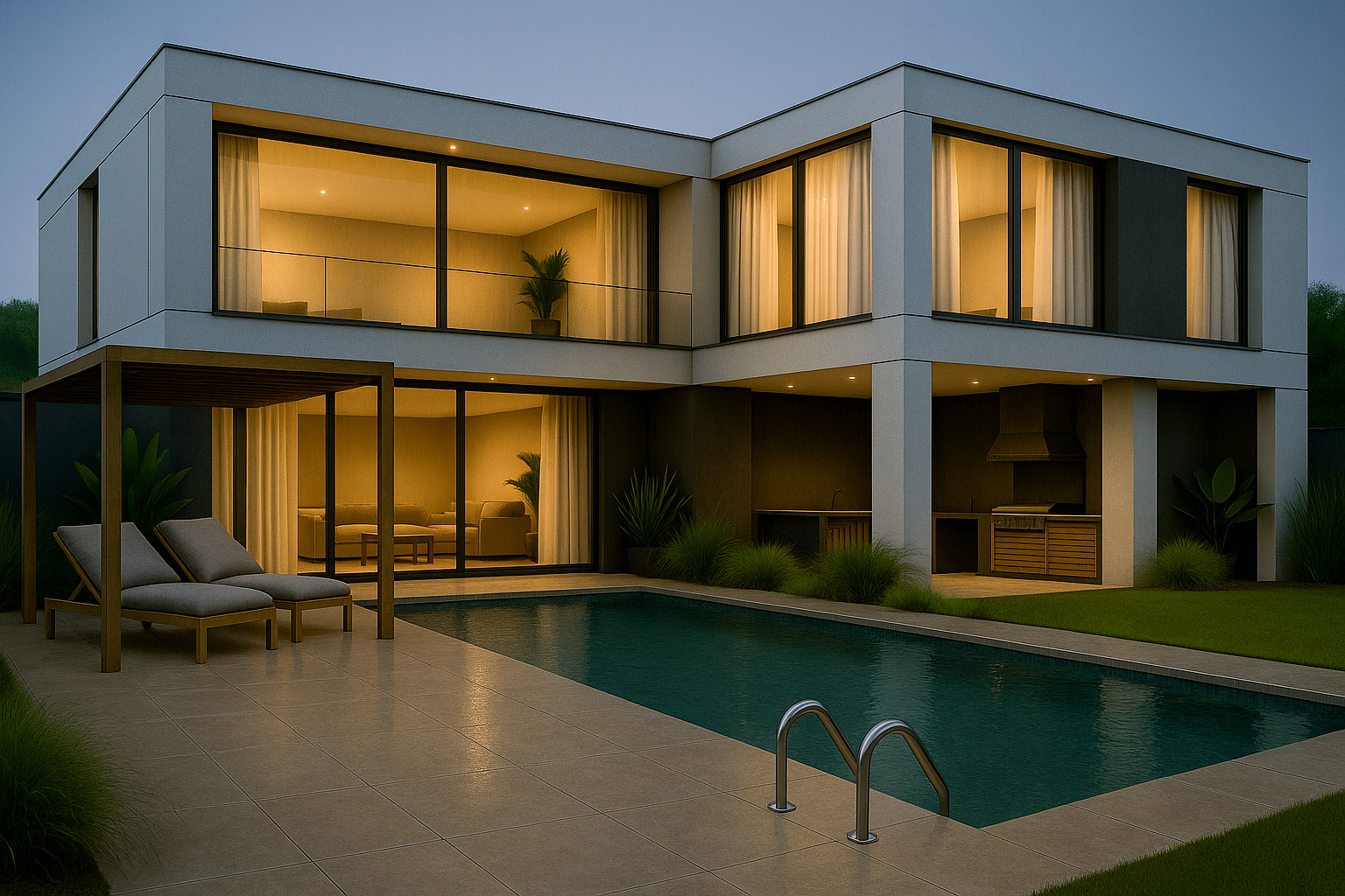Esta residência foi concebida para traduzir equilíbrio entre arquitetura contemporânea e bem-estar.
