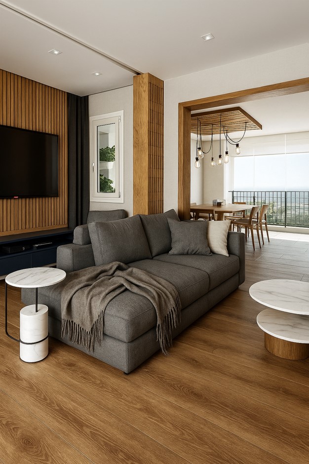 Naturalidade, leveza e sensorialidade guiam cada escolha — da paleta neutra aos materiais que aquecem e humanizam o espaço.