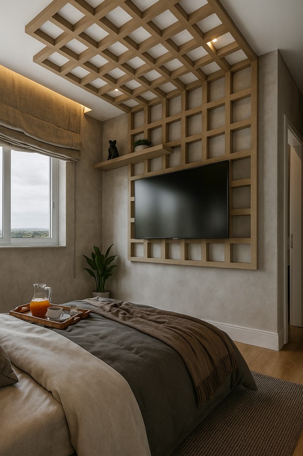 Os espaços sociais são integrados e voltados para a área externa, reforçando a ideia de viver em contato com a natureza e valorizando encontros, convivência e momentos em família. Já os ambientes íntimos foram desenvolvidos com atmosfera acolhedora, tons suaves e iluminação quente, proporcionando conforto, descanso e privacidade.