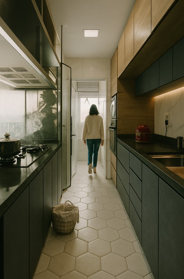 A luz desempenha papel fundamental no projeto, atravessando os ambientes e destacando texturas, materiais e a riqueza dos detalhes. Durante o dia, o espaço se abre para o entorno; à noite, a iluminação cênica revela novas camadas de aconchego, profundidade e refinamento.