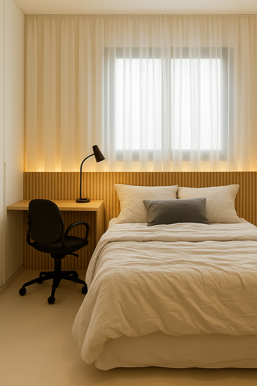 Aqui, a arquitetura se faz presente de forma gentil: prática no dia a dia, afetiva ao olhar, e cheia de propósito ao sentir. Um lar onde o tempo desacelera, a luz entra com suavidade e o bem-estar mora em cada escolha.